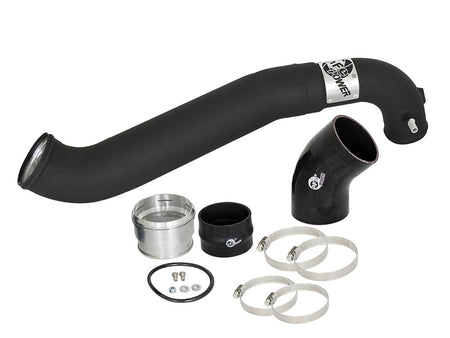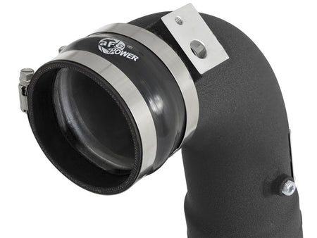 Flow and Performance: aFe Power's cold side tube is constructed from 3-1/2" and 3" mandrel-bent aluminum tubing for maximum flow then, powder-coated for a nice finish. The high-temp powder-coating also insulates the tube from engine heat and protects the tube from corrosion. The smooth transition bends decrease turbulence, minimize pressure loss, while increasing horsepower and torque. This tube is also equipped with a billet aluminum factory style quick connect adapter that seals with an o-ring. One 1/8" NPT port which is provided on the tube for a sensor or water-methanol injection. Perfect Fit: Utilizes the factory mounting locations to provide stability for a hassle-free installation. Includes high quality stainless steel clamps and heavy-duty 5-Ply couplings for strength. Fits OEM or aFe's upgraded intercooler. (46-20291). aFe Badging: Unique aluminum laser-cut aFe Power logo plate is welded-on for an aggressive style.