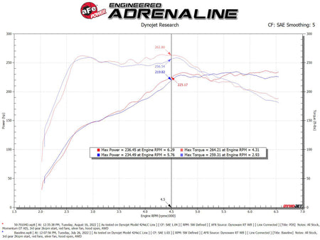 This aFe POWER Pro DRY S air filter is a 7-1/2†tall, oil-free, 360-degree conical flow performance air filter with three layers of synthetic media for maximum convenience. Its progressive layering provides great filtration efficiency and dust holding capacity, while not requiring the use of oils. This media is best suited for street and light off-road use. The sealed XLPE polymer housing features a rugged design, as well as a clear sight window, allowing for hassle-free filter inspection. aFe POWER's patent pending filter-to-housing interface eliminates the use of an overabundance of parts, further simplifying the installation process. The housing utilizes the factory air inlet, using no additional hardware, and features an optional auxiliary air inlet that pulls in additional air. This system features a high quality, computer-designed, dyno-tuned intake tube to achieve maximum power gains while maintaining a perfect fit. Its XLPE material is heat soak resistant and extremely durable. The computer designed system utilizes factory mounting locations, minimizing the use of unnecessary hardware and ensuring a perfect fit every time. Its innovative design makes for a hassle-free, direct bolt-on installation process that requires no cutting or drilling. Its revolutionary design, featuring our patent pending filter-to-housing interface, uses half the number of parts of a traditional cold air intake system.