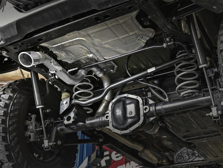 aFe's Mach Force-Xp axle-back exhaust system delivers form and function to your Jeep JL. This efficient, 2 1/2" mandrel-bent Hi-Tuck system delivers extra ground clearance when off-roading by replacing the stock, low-hanging muffler assembly. This stainless steel system utilizes the factory front resonator pipe to produce a very aggressive exhaust tone unleashing all available horsepower and torque.