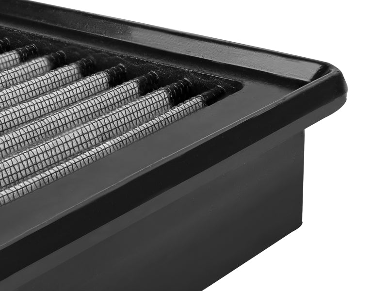 This filter features three layers of progressive media to provide maximum flow with excellent filtration. The progressive layering of media allows the filter to flow at high levels even when dirty. The Pro DRY S non-oiled synthetic air filter requires no oil after cleaning for maximum convenience. aFe performance air filters use a rounded, evenly spaced pleat design which allows for more usable filter surface area, providing increased flow and greater dust holding capacity. This pliable sealing surface conforms to even the most uneven filter housing, making for a perfect filter fit and sealing surface every time. This design eliminates the use of gaskets or sealants and always goes back to its original form. All aFe POWER performance air filters are constructed with a full 360-degree polyurethane frame. This construction allows for a proper factory style fit with excellent filter strength.