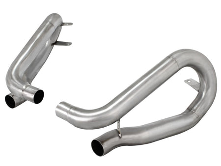 Bring the maximum power out of your exhaust system with the MACH Force-Xp secondary muffler bypass for the 2012-2016 Porsche 911 Carrera S (991) with H6-3.8L engine. These muffler bypass pipes are used to remove the secondary mufflers that are tucked up in the rear quarter panels reducing weight and improving performance. The muffler bypass pipes are straight through eliminating any muffler packing or baffling. Constructed of 2-1/2" mandrel bent 304 stainless steel tubing for maximum flow. Smooth transition bends allow for low turbulence, increasing horsepower, torque and lowering EGT's. This system uses factory mounting locations providing stability and hassle-free installation. All aFe exhaust systems are engineered and manufactured in our Corona, California manufacturing facility.