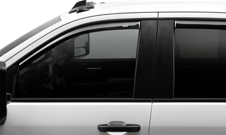 Air it out in style and adventure on with the AVS In-Channel Ventvisor. It installs inside the window channel for a seamless look and gives you total control over cab climate. Designed to custom fit your vehicle's exact year, make, and model, this in-channel mounted side window de?ector keeps rain and weather out and fresh air in. The constant circulation of air sweeps away unwanted odors from pets, smoking, spills and more. This sleek In-Channel Ventvisor comes in a dark smoke finish with UV resistant materials so no matter how many hours you spend behind the wheel, the color never fades. Installation is hassle-free with no drilling or special hardware required -- just attach with the included 3M automotive grade adhesive from the comfort of your own home. All AVS side window de?ectors are engineered tough to withstand all the elements and are backed by a Limited Lifetime Warranty. Proudly made in the USA with global materials.
