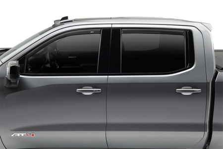 Hit the open road in style with the lowest profile window deflector on the market. The AVS Low Profile Ventvisor is designed to complete the look of your vehicle by adding subtle style while maintaining the functionality you desire from a side window de?ector. Made of impact resistant acrylic with a dark smoke finish or warp-resistant ABS construction in a chrome or matte black finish, this Ventvisor is strong yet ?exible enough to withstand all of nature's elements, from rain and ice to scratching branches and glaring sun. It comes custom-molded to match your vehicle's year, make, and model, and hugs the contours of your car for a sleek, aerodynamic look. Installation is hassle-free and can be done it minutes from the comfort of your own home. No drilling or tools required, just attach using the included 3M automotive grade adhesive. Once installed, it's easy to refresh your morning commute by rolling down your windows and circulating air through your cab, keeping it fresh and scent-free even in bad weather. When parked, leave the windows cracked to prevent heat buildup while keeping rain out. Plus, it's backed by a Limited Lifetime Warranty. Proudly made in the USA with global materials.