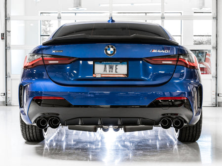 Presenting The Best Sounding Exhausts on the Planet™ for the BMW G20 M340i: At the intersection of sophistication and aggression lies the Touring Edition Exhaust. A dual 3†T304L stainless steel downpipe-back configuration, the AWE Touring Edition Exhaust is the perfect dose of steel for drivers looking for straight-pipe performance while not sacrificing daily drivability: a deep, sophisticated exhaust note with zero drone at highway speeds. Featuring a stamped stainless steel merge upstream equivalent to dual 3†tubing coming right off of the downpipe. Translation: an impressive 65% increase in flow over stock that future proofs for downpipes of various sizes. Beyond the unique merge, the exhaust splits into dual 3†piping to allow optimal flow throughout the entire exhaust route. Bringing up the rear, the Touring Edition features AWE’s patented drone-canceling solution, 180 Technology®, which targets and omits drone-prone frequencies. What’s this mean for you? You’ll be tuned into a pure, full-bodied B58 soundtrack unlike any other. Equipping a downpipe? Read this (seriously): The Touring Edition Exhaust is available as non-resonated or resonated. We recommend the non-resonated variant for vehicles equipped with the stock downpipe. If your M340i is equipped with an aftermarket downpipe, we recommend going resonated. Have the stock downpipe but plan to go aftermarket later? No worries, you can swap in the resonated midsections with ease via an AWE Resonator Conversion Kit. Hit us here if you're in need of this Conversion Kit.Track Edition ExhaustTip Options: The Touring and Track Edition Exhausts feature statement-making quad 102mm, double-walled, slash-cut tips in either chrome silver or diamond black, complete with a stamped AWE logo. For those who want to keep their OE tips in place, we have configurations that were designed specifically to do that. Just for you.