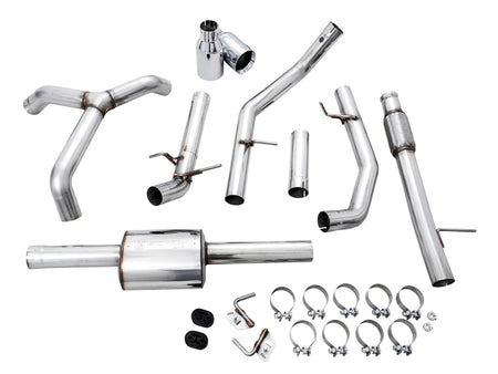 AWE Tuning 4th Gen GM 1500 5.3L 0FG Catback Split Rear Exit (Flat Bumper) - Quad Chrome Tips