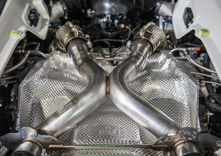 AWE has tapped over two decades of experience in unlocking performance to create one of the finest exhaust systems available for this upper echelon automobile. The AWE exhaust for the McLaren 650S is designed to perfectly smooth the aggressively raw tone that results from mating the AWE Performance Catalysts to the stock exhaust system. The resulting acoustic character is nothing short of breathtaking, offering a note that is both hard-hitting and exotic. The exhaust is constructed from mandrel bent 304 stainless steel at 3†diameter throughout and features a small balance opening between the banks to produce the a desirable and exotic tone. This version of the AWE Performance Exhaust for your 650S features logo'd tips evoking the factory geometry in a discrete satin black finish. AWE's No CEL Guarantee, Perfect Fitment Guarantee, and Lifetime Warranty come standard.