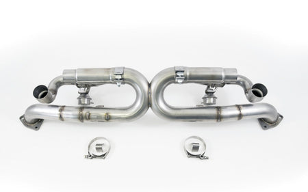 This is the finest exhaust available for the Porsche 991 Carrera S and 4S available. Period. The AWE SwitchPathâ„¢ Exhaust for the Porsche 991 is for those looking to increase power and bring out the note of their 3.8L power plant, without turning their backs on perfect daily-drivability and Porsche sophistication. It's Track and Touring, all in one elegant SwitchPathâ„¢ Exhaust. Constructed from T304 Stainless Steel, the AWE Porsche 991 SwitchPathâ„¢ Exhaust shows midrange gains of 20hp and 25tq at the crank and weighs in at 7.5lbs less than the stock unit, accomplished by replacing the stock center muffler with AWE-engineered strategically sized straight pipe sections. The AWE Porsche 991 SwitchPathâ„¢ Exhaust includes integrated valves designed to afford drivers the best of both worlds: A Track Edition Exhaust and a Touring Edition Exhaust, all in one. The AWE Porsche 991 SwitchPathâ„¢ Exhaust responds to the exhaust valve position commands sent from your Porsche’s ECU dependent on your throttle input. This means that the AWE Porsche 991 SwitchPathâ„¢ Exhaust will transform from “Track†(The SwitchPathâ„¢ valve directs exhaust gasses away from the side mufflers, for Cup Car levels of “announcementâ€) to “Touring†(The SwitchPathâ„¢ valve closes, routing exhaust gasses through the stock side mufflers, for a sophisticated, signature AWE tone, at a volume slightly above stock). Exhaust volume change matches the driving style: Aggressive throttle input elicits aggressive exhaust volume; tame throttle input elicits tame exhaust volume.