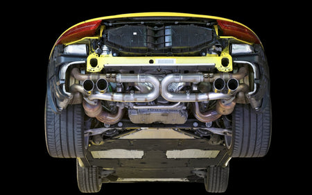 This is the finest exhaust available for the Porsche 991 Carrera S and 4S available. Period. The AWE SwitchPathâ„¢ Exhaust for the Porsche 991 is for those looking to increase power and bring out the note of their 3.8L power plant, without turning their backs on perfect daily-drivability and Porsche sophistication. It's Track and Touring, all in one elegant SwitchPathâ„¢ Exhaust. Constructed from T304 Stainless Steel, the AWE Porsche 991 SwitchPathâ„¢ Exhaust shows midrange gains of 20hp and 25tq at the crank and weighs in at 7.5lbs less than the stock unit, accomplished by replacing the stock center muffler with AWE-engineered strategically sized straight pipe sections. The AWE Porsche 991 SwitchPathâ„¢ Exhaust includes integrated valves designed to afford drivers the best of both worlds: A Track Edition Exhaust and a Touring Edition Exhaust, all in one. The AWE Porsche 991 SwitchPathâ„¢ Exhaust responds to the exhaust valve position commands sent from your Porsche’s ECU dependent on your throttle input. This means that the AWE Porsche 991 SwitchPathâ„¢ Exhaust will transform from “Track†(The SwitchPathâ„¢ valve directs exhaust gasses away from the side mufflers, for Cup Car levels of “announcementâ€) to “Touring†(The SwitchPathâ„¢ valve closes, routing exhaust gasses through the stock side mufflers, for a sophisticated, signature AWE tone, at a volume slightly above stock). Exhaust volume change matches the driving style: Aggressive throttle input elicits aggressive exhaust volume; tame throttle input elicits tame exhaust volume.