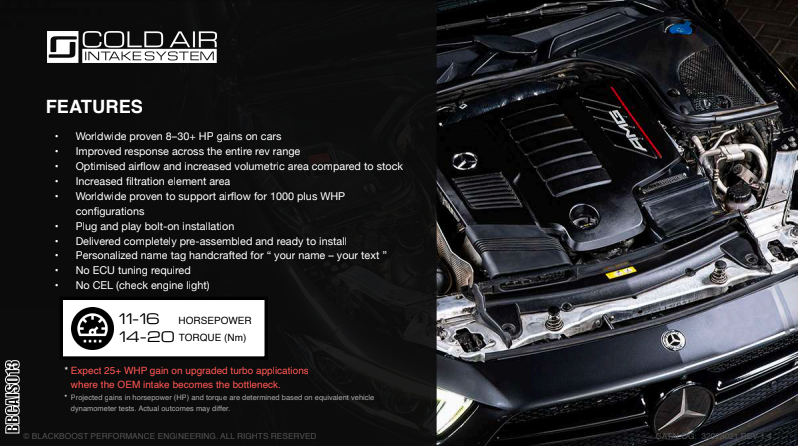 The BlackBoost intake Kit is a Plug and Play solution, works perfectly by itself without other mods and no additional software tuning is necessary.