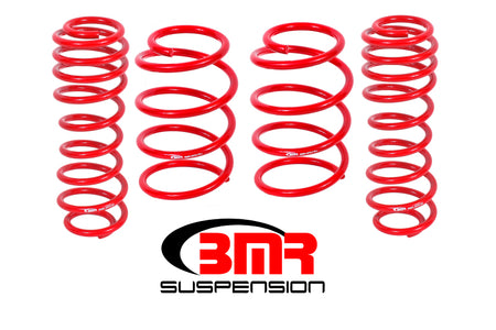 This important feature provides a "variable natural frequency" in the spring to help counteract damaging wheelhop. This is a feature of the OE springs often overlooked by other companies simply because they don't realize it's benefits in multi-purpose applications.BMR Suspensions SP009 lowering springs are available in red powdercoat for long-lasting good looks. Installation time is about 2-3 hours. Proudly made in the U.S.A.