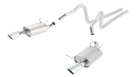 Features bright chrome on T-304 stainless steel tips. Borla has developed a revolutionary exhaust technology that enables their engineers to deliver unprecedented vehicle-specific control over the acoustical note of an exhaust throughout the RPM range, while retaining 100% of the power-adding capabilities of Borla's patented Multicore design. Called ATAK(r) (Acoustically-Tuned Applied Kinetics), this exclusive technology (U.S. patent #5,248,859) produces the highest available dB (decibel) levels in the Borla street-legal lineup, and is designed for high-performance purists who prefer exhaust notes over their stereos. The focus of ATAK(r) is to pump the volume while retaining clarity of sound, at the same time avoiding the drone and distortion typically found in louder exhausts. With ATAK(r), the sound output is tuned like a graphic equalizer to shape and focus sound waves for optimum high-volume output. The development of each ATAK(r) system begins with extensive study of each vehicle's acoustical properties. The technology is based on custom-tuned attributes of the internal muffler cores, which are calibrated on a vehicle-by-vehicle basis to deliver the most desirable sound. Borla has Cat-Back and/or Axle-Back ATAK(r) exhaust systems for a wide variety of popular applications such as Mustang GT, Camaro, Corvette, Challenger, GTR, and more in development. Like all Borla exhaust products, each system is handmade in the USA by master craftspeople and features premium T-304 austenitic stainless steel construction, mandrel bending by computer-controlled CNC machinery to ensure maximum flow and a perfect fit, mirror-polished tips, and a Million-Mile Warranty. For more information about Borla products, visit ww.Borlacom. Or call toll free 1-877-GO Borla