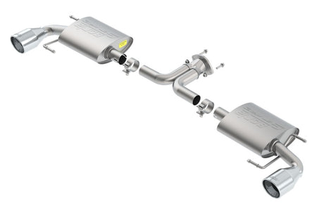 System features polished T-304 stainless steel tips. Borla Cat-Back & Axle-back exhaust systems feature patented straight-through and multi-core technology designed to unleash hidden horsepower. Increased exhaust velocity adds power, driving excitement, fuel economy, and the distinctive Borla Sound of Power respected by motoring enthusiasts everywhere. Each system is built from premium T-304 stainless steel, superior to T-400 series knockoffs (such as 409), to give you the absolute best in performance and durability. Ultra-smooth mandrel bends ensure maximum flow & power, and precision computer-controlled CNC manufacturing ensures an accurate fit. Best of all, Borla stands behind every system with a Million-Mile Warranty. Just what you'd expect from the world's most experienced (and most winning) exhaust brand.