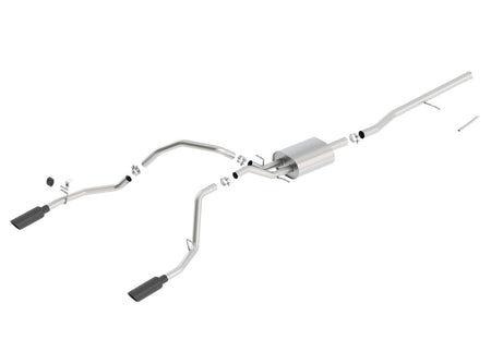 Borla 14 Sierra 1500 C/B S-Type Exh/2.75in Into Dual 2.25in Out 4in Split Rear Exit-Black Chrome