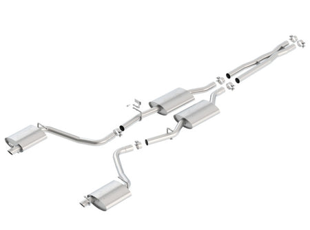 This system features the aggressive ATAK(r) sound and a merge X-Pipe for increased performance and improved sound. Tips NOT included use factory bezel/ valance. BORLA(r) Cat-Back(tm) and Axle-Back multi-core technology is designed to unleash hidden horsepower. Increased exhaust velocity adds power, driving excitement, fuel economy, and the distinctive BORLA(r) Sound of Power respected by motoring enthusiasts everywhere. Each system is built from premium T-304 stainless steel, superior to T-400 series knockoffs (such as 409), to give you the absolute best in performance and durability. Ultra-smooth mandrel bends ensure maximum flow & power, and precision computer numerical control (CNC) manufacturing ensures an accurate fit. Best of all, BORLA(r) stands behind every system with a Million-Mile Warranty. Just what you'd expect from the world's most experienced (and most winning) exhaust brand.