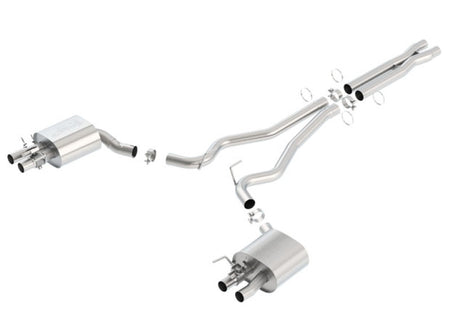 This system features the aggressive ATAK(r) sound and a merge X-Pipe for increased performance and improved sound. Tips NOT included, this system utilizes the factory exhaust tip/ bezels and features. System features valves for the Selectable Driving Mode. BORLA(r) Cat-Back(tm) and Axle-Back exhaust systems feature patented straight-through and multi-core technology designed to unleash hidden horsepower. Increased exhaust velocity adds power, driving excitement, fuel economy, and the distinctive BORLA(r) Sound of Power respected by motoring enthusiasts everywhere. Each system is built from premium T-304 stainless steel, superior to T-400 series knockoffs (such as 409), to give you the absolute best in performance and durability. Ultra-smooth mandrel bends ensure maximum flow & power, and precision computer numerical control (CNC) manufacturing ensures an accurate fit. Best of all, BORLA(r) stands behind every system with a Million-Mile Warranty. Just what you'd expect from the world's most experienced (and most winning) exhaust brand.