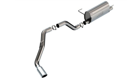 This BORLA(r) system utilizes the factory transition pipe between the cats and the muffler so that it will fit ALL Cab and Bed configurations. EXCEPT vehicles with Dual Rear Wheels. The 140851 Cat-Back(tm) by BORLA(r) is made to give you the best performance, sound and durability possible. It utilizes high quality T-304 stainless steel, superior to T-409, for durability, mandrel bent pipes for high flow, and precision computer numerical control (CNC) manufacturing ensures an accurate fit. The uniquely designed muffler provides the classic BORLA(r) S-Type sound without drone. This system comes with a 5" bright chrome on T-304 stainless steel tip. A system with black chrome on T-304 stainless steel is also available. And as you would expect it is covered by the BORLA(r) Million Mile Warranty.