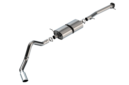 EXCEPT Diesel engine. EXCEPT vehicles with Dual Rear Wheels. This system features the classic BORLA(r) S-Type sound and a 5" bright chrome on T-304 stainless steel tip. A black chrome on T-304 stainless steel tip is also available. BORLA(r) Cat-Back(tm) and Axle-Back exhaust systems feature patented straight-through and multi-core technology designed to unleash hidden horsepower. Increased exhaust velocity adds power, driving excitement, fuel economy, and the distinctive BORLA(r) Sound of Power respected by motoring enthusiasts everywhere. Each system is built from premium T-304 stainless steel, superior to T-400 series knockoffs (such as 409), to give you the absolute best in performance and durability. Ultra-smooth mandrel bends ensure maximum flow & power, and precision computer numerical control (CNC) manufacturing ensures an accurate fit. Best of all, BORLA(r) stands behind every system with a Million-Mile Warranty. Just what you'd expect from the world's most experienced (and most winning) exhaust brand.