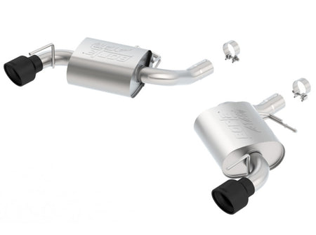 This system is for vehicles that come from the factory with single tips and are NOT equipped with NPP (dual mode exhaust). This system features the aggressive ATAK(r) sound and exits through high-temperature ceramic black on 4.5" T-304 stainless steel tips. Systems with bright chrome on T-304 stainless steel tips and carbon fiber tips are also available. BORLA(r) Cat-Back(tm) & Axle-Back exhaust systems feature patented straight-through and multi-core technology to unleash hidden horsepower. Increased exhaust velocity adds power, driving excitement, fuel economy, and the distinctive BORLA(r) Sound of Power respected by motoring enthusiasts everywhere. Each system is built from premium T-304 austenitic stainless steel, superior to T-400 series knockoffs (such as 409), to give you the absolute best in performance and durability. Ultra-smooth mandrel bends ensure maximum flow & power, and precision computer numerical control (CNC) manufacturing ensures an accurate fit. Best of all, BORLA(r) stands behind every system with a Million-Mile Warranty. Just what you'd expect from the world's most experienced (and most winning) exhaust brand.