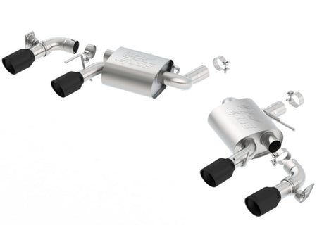 This system is for vehicles equipped with Dual Tips and Dual Mode Exhaust (NPP) valves. This system features functioning NPP valves. The ATAK(r) system is our most aggressive sounding system. Features high-temperature ceramic black on 4" T-304 stainless steel tips. BORLA(r) Cat-Back(tm) & Axle-Back exhaust systems feature patented straight-through and multi-core technology to unleash hidden horsepower. Increased exhaust velocity adds power, driving excitement, fuel economy, and the distinctive BORLA(r) Sound of Power respected by motoring enthusiasts everywhere. Each system is built from premium T-304 austenitic stainless steel, superior to T-400 series knockoffs (such as 409), to give you the absolute best in performance and durability. Ultra-smooth mandrel bends ensure maximum flow & power, and precision computer numerical control (CNC) manufacturing ensures an accurate fit. Best of all, BORLA(r) stands behind every system with a Million-Mile Warranty. Just what you'd expect from the world's most experienced (and most winning) exhaust brand.