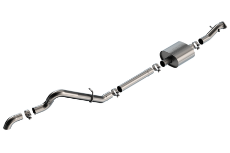 This 2.75" diameter high clearance Climber Cat-Back system is designed with ground clearance in mind. It features a brushed 2.75" T-304 stainless steel turndown tip and is the ideal system for off-roading, overlanding, or rock crawling. This system is specifically tuned for flow and sound on the Bronco's 2.3L engine. The Touring sound level delivers a mellow sound that provides just a little more body and volume when compared to stock. It is perfect for those looking for a warm, throaty sound all without any of the annoying drone inside the cabin. Ultra-smooth mandrel bends ensure maximum flow & power, and precision computer numerical control (CNC) manufacturing ensures an accurate fit. The systems T-304 austenitic stainless steel construction ensures it can handle whatever you throw its way. For performance and sound on the trails, choose Borla. Best of all, BORLA stands behind every system with a Million-Mile Warranty. Just what youd expect from the worlds most experienced (and most winning) exhaust brand. Climber High-Clearance System 2.75" Brushed T-304 Stainless Steel Turndown Tip Touring Sound Level No-Drone Bolt-On Installation T-304 Stainless Steel Construction Million-Mile Warranty