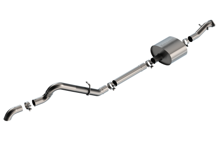This 2.75" diameter high clearance Climber Cat-Back system is designed with ground clearance in mind. It features a brushed 2.75" T-304 stainless steel turndown tip and is the ideal system for off-roading, overlanding, or rock crawling. Positioned between the Touring and the ATAK, the S-Type delivers a noticeable increase in sound and overall volume without being intrusive. As expected, the system is drone-free to ensure an enjoyable ride inside the vehicle. This system is specifically tuned for flow and sound on the Bronco's 2.7L engine. Ultra-smooth mandrel bends ensure maximum flow & power, and precision computer numerical control (CNC) manufacturing ensures an accurate fit. The system's T-304 stainless steel construction ensures it can handle whatever you throw its way. For performance and sound on the trails, choose Borla. Best of all, we stand behind every system with a Million-Mile Warranty, just what youd expect from the worlds most experienced (and most winning) exhaust brand. Climber High-Clearance System 2.75" Brushed T-304 Stainless Steel Turndown Tip S-Type Sound Level No-Drone Bolt-On Installation T-304 Stainless Steel Construction Million-Mile Warranty