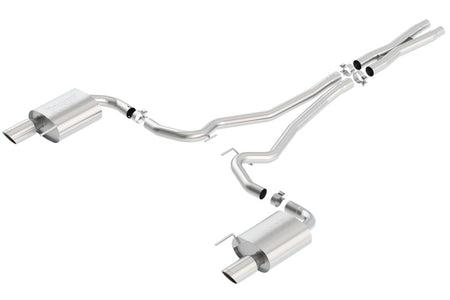 System contains a merge X-Pipe for increased performance and improved sound. Features bright chrome on T-304 stainless steel tips. Borla Cat-Back & Axle-Back exhaust systems feature patented straight-through and multi-core technology designed to unleash hidden horsepower. Increased exhaust velocity adds power, driving excitement, fuel economy, and the distinctive Borla Sound of Power respected by motoring enthusiasts everywhere. Each system is built from premium T-304 stainless steel, superior to T-400 series knockoffs (such as 409), to give you the absolute best in performance and durability. Ultra-smooth mandrel bends ensure maximum flow & power, and precision computer-controlled CNC manufacturing ensures an accurate fit. Best of all, Borla stands behind every system with a Million-Mile Warranty. Just what you'd expect from the world's most experienced (and most winning) exhaust brand.