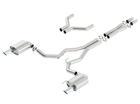 EXCEPT convertible. Recommended only for vehicles with substantial engine upgrades that require a 3" exhaust. System contains a merge X-Pipe for increased performance and improved sound. This system features bright chrome on T-304 stainless steel tips. Borla Cat-Back & Axle-Back exhaust systems feature patented straight-through and multi-core technology designed to unleash hidden horsepower. Increased exhaust velocity adds power, driving excitement, fuel economy, and the distinctive Borla Sound of Power respected by motoring enthusiasts everywhere. Each system is built from premium T-304 stainless steel, superior to T-400 series knockoffs (such as 409), to give you the absolute best in performance and durability. Ultra-smooth mandrel bends ensure maximum flow & power, and precision computer-controlled CNC manufacturing ensures an accurate fit. Best of all, Borla stands behind every system with a Million-Mile Warranty. Just what you'd expect from the world's most experienced (and most winning) exhaust brand.