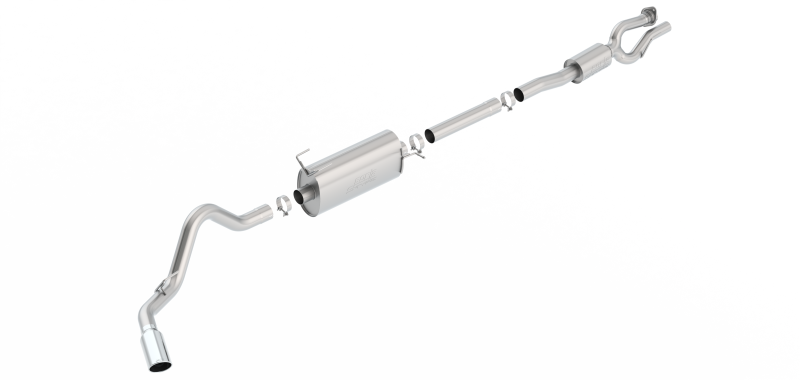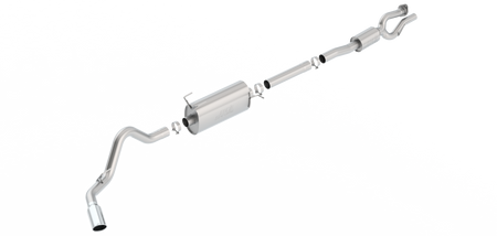 This dual 2.75" into single 3" diameter Cat-Back system was developed for use on F-250 and F-350 Super Duty trucks with performance, sound, style and durability in mind. The computer numerical control (CNC) formed pipes ensure the best possible flow for horsepower and torque. The muffler is specifically designed to give the 6.2L engine the classic S-Type sound any enthusiast would enjoy without the resonance (drone) that they don't. Only T-304 stainless steel is used in the construction of Borla systems, that allows us to give you a Million Mile warranty. These systems can be adapted to the different wheelbases offered by Ford and come with either a 5" bright chrome on T-304 stainless steel (140798) or 5" black chrome on T-304 stainless steel (140798BC) tip. You can configure these systems for any of the cab and bed configurations offered. The 140798 and 140798BC come with the front extension pipe for the Crew Cab with Short Bed (6' 9") 160" Wheelbase configuration. But the system is not limited to that configuration alone. By removing the front extension pipe it will fit the Regular Cab with Standard Bed (8') 142" Wheelbase. Add PN 60691 for Super Cab with Short Bed (6' 9") 148" Wheelbase, PN 60692 for Super Cab with Standard Bed (8') 164" Wheelbase, or PN 60693 for Crew Cab with Standard Bed (8') 176" Wheelbase vehicles. See the related parts section for these extension pipes. NONE of these systems or configurations will fit trucks with dual rear wheels.