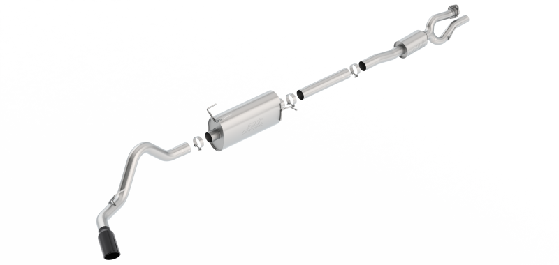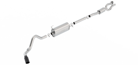 This dual 2.75" into single 3" diameter Cat-Back system was developed for use on F-250 and F-350 Super Duty trucks with performance, sound, style and durability in mind. The computer numerical control (CNC) formed pipes ensure the best possible flow for horsepower and torque. The muffler is specifically designed to give the 6.2L engine the classic S-Type sound any enthusiast would enjoy without the resonance (drone) that they don't. Only T-304 stainless steel is used in the construction of Borla systems, that allows us to give you a Million Mile warranty. These systems can be adapted to the different wheelbases offered by Ford and come with either a 5" black chrome on T-304 stainless steel (140798BC) or 5" bright chrome on T-304 stainless steel (140798) tip. Using BORLA Stainless Steel Polish p# 21461 is NOT recommended with these black chrome tips. We suggest cleaning the tips with hot water and a microfiber cloth. You can configure these systems for any of the cab and bed configurations offered. The 140798 and 140798BC come with the front extension pipe for the Crew Cab with Short Bed (6' 9") 160" Wheelbase configuration. But the system is not limited to that configuration alone. By removing the front extension pipe it will fit the Regular Cab with Standard Bed (8') 142" Wheelbase. Add PN 60691 for Super Cab with Short Bed (6' 9") 148" Wheelbase, PN 60692 for Super Cab with Standard Bed (8') 164" Wheelbase, or PN 60693 for Crew Cab with Standard Bed (8') 176" Wheelbase vehicles.See the related parts section for these extension pipes. NONE of these systems or configurations will fit trucks with dual rear wheels.