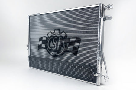 CSF's B58 high-performance heat exchanger will be a critical component to keeping your Supra/BMW's charge air cool, and out of limp mode. The upgraded heat exchanger is especially important when upgrading turbos and/or running performance tuning software. The original 2nd Gen B58 heat exchanger is a 1-row unit that is 25mm thick. In comparison, CSF has used its industry-exclusive world's largest 2-row core (68mm) with CSF's B-Tube technology. A unique tank design allows the larger CSF core to still fit into the OEM cooling system housing. The CSF improved design, includes billet transmission cooler mounts, and metal rock guard with improved airflow characteristics. CSF is the only company to include a rock guard and incorporate OEM transmission cooler mounting points for a true plug-and-play "drop-in" fit.