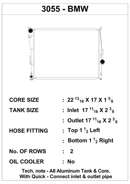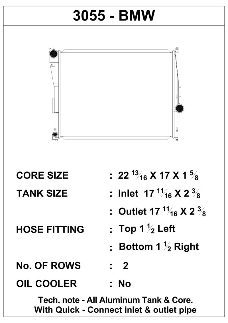 CSF has over 5 decades of experience manufacturing radiators. So when it comes to keeping your engine cool and your E46 3-Series/Z4 running at its best, a CSF High-Performance All-Aluminum Radiator is the obvious choice. Designed to perform on the street or at the track, a performance radiator is a must-have for both high horsepower builds as well as race vehicles which need added cooling performance in motorsports environments. This radiator features a 2-Row core with CSF's exclusive B-Tube Technology: Unlike a regular oval shape "O" type radiator tube, CSF uses a specially engineered tube in the shape of a "B". These "B-tubes" are carefully formed and then brazed over the seam to seal. CSF is able to use thinner and lighter aluminum material (with better cooling efficiency) because this design is actually stronger than normal "O" shape tubes that are welded. The design (inlet in the middle of the tube that is seam brazed) increases the heat transfer surface area of the tubes by approximately 15% over regular tubes - producing the efficiency of two smaller tubes vs. one large tube within the same space criteria. With "B-tubes" you are able to get "dual liquid laminar flow". CSF also uses ultra efficient multi louvered fins that are carefully and precisely aligned to maximize airflow through each radiator core. Fin specifications are carefully measured and calculated for each application, and tested for maximum heat rejection efficiency in our wind-tunnel lab.