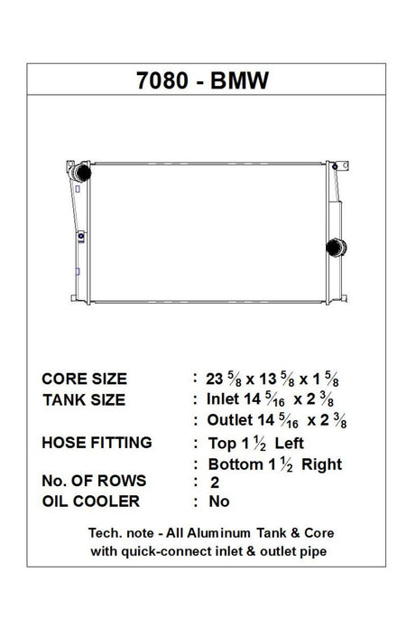CSF has over 5 decades of experience manufacturing radiators. So when it comes to keeping your engine cool and your F2X/F3X running at its best, a CSF High-Performance All-Aluminum Radiator is the obvious choice. Designed to perform on the street or at the track, a performance radiator is a must-have for both high horsepower builds as well as race vehicles which need added cooling performance in motorsports environments. This radiator features a 2-Row core with CSF's exclusive B-Tube Technology: Unlike a regular oval shape "O" type radiator tube, CSF uses a specially engineered tube in the shape of a "B". These "B-tubes" are carefully formed and then brazed over the seam to seal. CSF is able to use thinner and lighter aluminum material (with better cooling efficiency) because this design is actually stronger than normal "O" shape tubes that are welded. The design (inlet in the middle of the tube that is seam brazed) increases the heat transfer surface area of the tubes by approximately 15% over regular tubes - producing the efficiency of two smaller tubes vs. one large tube within the same space criteria. With "B-tubes" you are able to get "dual liquid laminar flow". CSF also uses ultra efficient multi louvered fins that are carefully and precisely aligned to maximize airflow through each radiator core. Fin specifications are carefully measured and calculated for each application, and tested for maximum heat rejection efficiency in our wind-tunnel lab.