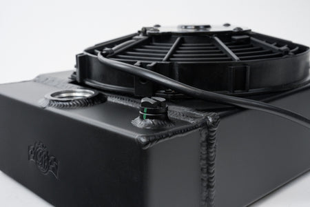After more than 9 months of R&D, and input from some of the best import drag race builders in N. America, CSF has brought to the sport compact market the most advanced drag race cooling system ever developed. Introducing the KING Cooler. For the longest time, buying a drag-race radiator was a tasking process. End users had to custom order the unit based on their connection and mounting specifications. Typically, this process would take 2-4 weeks and be rather expensive. CSF has eliminated this hassle by making sure that these units are in stock in both of CSF's coastal warehouses and on the shelves of distributors and supporting dealers around the world. Universal Fit Allows for Mounting in Multiple Different Configurations. The Triple-Pass Flow Structure allows the coolant to flow across the core of the radiator three times before exiting for lowest outlet temperatures possible. This radiator features a 2-Row core with CSF's exclusive B-Tube Technology: Unlike a regular oval-shaped "O" type radiator tube, CSF uses a specially engineered tube in the shape of a "B". These "B-tubes" are carefully formed and then brazed over the seam to seal. CSF is able to use thinner and lighter aluminum material (with better cooling efficiency) because this design is actually stronger than normal "O" shape tubes that are welded. The design (inlet in the middle of the tube that is seam brazed) increases the heat transfer surface area of the tubes by approximately 15% over regular tubes - producing the efficiency of two smaller tubes vs. one large tube within the same space criteria. With "B-tubes" you are able to get "dual liquid laminar flow". CSF also uses ultra efficient multi louvered fins that are carefully and precisely aligned to maximize airflow through each radiator core. Fin specifications are carefully measured and calculated for each application, and tested for maximum heat rejection efficiency in our wind-tunnel lab.