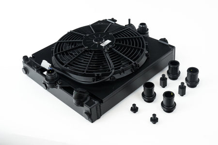 CSF has created the Ultimate Half radiator with direct fitment for the most popular 92-00 Honda Civic platform. Even better, it can be used as a universal radiator and comes with a direct-fitment kit for Mitsubishi Evolution 7/8/9 models as well. A true innovation of the industry's #1 selling model. Take your set up to the next level with this Half sized radiator. This radiator features a 2-Row core with CSF's exclusive B-Tube Technology: Unlike a regular oval shape "O" type radiator tube, CSF uses a specially engineered tube in the shape of a "B". These "B-tubes" are carefully formed and then brazed over the seam to seal. CSF is able to use thinner and lighter aluminum material (with better cooling efficiency) because this design is actually stronger than normal "O" shape tubes that are welded. The design (inlet in the middle of the tube that is seam brazed) increases the heat transfer surface area of the tubes by approximately 15% over regular tubes - producing the efficiency of two smaller tubes vs. one large tube within the same space criteria. With "B-tubes" you are able to get "dual liquid laminar flow". CSF also uses ultra efficient multi louvered fins that are carefully and precisely aligned to maximize airflow through each radiator core. Fin specifications are carefully measured and calculated for each application, and tested for maximum heat rejection efficiency in our wind-tunnel lab.