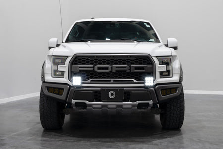 FeaturesBolt-on fitment compatible with Ford Raptor 2017-2020Ultra-high intensity with custom-engineered TIR opticsSelectable backlight color with eight color optionsTorture-tested heavy-duty constructionAssembled in USA OverviewPerfect Fitment. The Bumper LED Pod Light Kit compatible with Ford Raptor 2017-2020 from Diode Dynamics allows you to mount two SS5 LED pods on the factory bumper. These application-specific brackets were CAD-designed to bolt into place using factory mounting points.Designed for Performance. Featuring the highest output intensity of any 5-inch LED pod on the market these lamps have been designed for maximum functionality with patented technology and custom-engineered TIR optics all in a durable package.Selectable Backlight. The Stage Series 5inch LED Pods included in the White kit feature a selectable backlight with eight different color options perfect for an extra styling accent or for more visibility when you(TM) re not using the main beam. Selecting your backlight color is easy - simply alternate the power on and off. There(TM) s no complicated programming with a controller! The SS5's backlight fully illuminates the TIR optic providing unique accent lighting that you won't find on other LED pods. NOTE: Due to the yellow lens the Yellow kit is only available with an Amber backlight color.NOTE: The existing mounting points must be drilled out larger in order to secure the bracket.