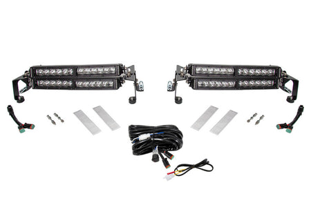 Features Rally-designed light bar mounting solution.Mount up to four 12 Stage Series light bars. Fully customizable adjust light bar angle and position.Quick release mounts for night stages with DZUS sliding lock fasteners.Highly durable 12 gauge powdercoated steel construction.OverviewDesigned for racing.The Motorsports LED Light Bar Kit from Diode Dynamics allows you to mount up to four SS12 Stage Series 12" Light Bars on the hood of your vehicle. The whole kit includes everything needed for installation and uses stainless steel hardware for long lasting durability including custom-made stainless rubber bumpers which absorb vibration and prevent any damage to the hood. These purpose-built brackets were CAD-designed to provide the performance you need to Go Faster and See Further. "
