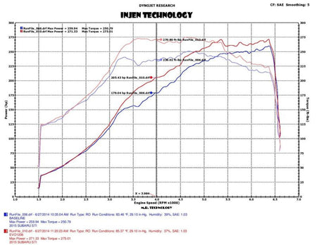 Roto-molded Housing and Ram Air Scoop: The EVO1206 system features our 2-piece box design that incorporates our boost plenum. The box attaches to our fully incorporated ram air scoop to capture the maximum amount of cool air to feed that hungry turbo. , , 6061 Aluminum Intake Tube: The EVO1206 Evolution Air Intake System uses a custom designed and dyno-tuned, aluminum intake tube that utilizes our patented air fusion and MR technology to produce huge power gains while retaining an OE quality fit and safe fuel trim levels. SuperNano-Web Dry Air Filter: "That's massive!"is all you will hear about this SuperNano-Web Dry air filter that is included with the EVO1206 cold air intake system. This filter has been uniquely designed to work with the downward facing orientation to ensure a leak-proof seal. Using the largest filter possible for this application has increased the available air volume - resulting in added power while keeping the installation process quick and simple. , , Quality Hardware: From the Stainless Steel Band Clamps with an inner protective liner to the reinforced automotive grade silicone coupler, every aspect is covered for a perfect and secure fit. , , Hassle-Free Installation: Make it easy! By designing this kit in a 3D workspace, you're ensured a quick and easy installation that not only increases the power output of your engine, but also provides a clean and powerful look that others see every time you pop your hood. Dyno Proven: Clean and simple, NUMBERS talk! Injen has put in the time and diligence to stand behind our performance data. We put in the time to test and prove that we have developed a superior kit for your Subaru. After hours of designing and dyno teWRX STIng, Injen is proud to say that the EVO1206 Evolution Air Intake system puts down numbers of up to 26 additional horsepower and 34 Ft.-lbs. of torque.
