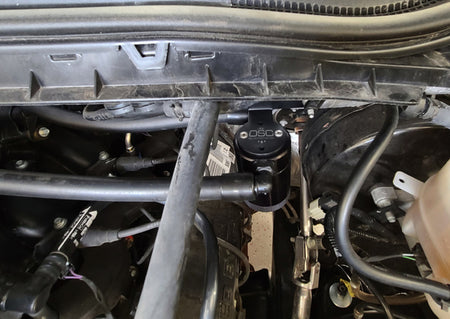 During the process of venting crankcase pressure back through your intake track, large amounts of oil, in the form of vapors can gather/accumulate in your intake tube, intake manifold runners and even dilute your gas, lowering its octane level. This happens on all engines and is even worse with forced inducted vehicles (supercharged and turbocharged) as crankcase pressures are increased. To combat this, we have developed an oil separator of our own design. Milled from solid billet aluminum this is a rock-solid piece. It has a knurled tank base for easy removal to drain the spent oil and an O-ring seal to prevent any leaks. Filtering consists of a fine mesh stainless steel screen that traps fine oil vapors and releases them once heavy enough to fall. They then pass through a 1/2" thick 1/16th" aluminum honeycomb filter where they grow every larger and then fall into the bottom. By the time the oil gets through the filter it's too heavy to be passed on into the intake. The tank holds 3 oz of fluid, while that may not sound like a lot, you shouldn’t see that much oil in your PCV system. Drain it every 2000-3000 miles and you will never come close to filling it.