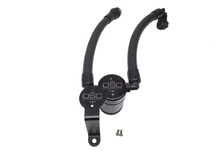 During the process of venting crankcase pressure back through your intake track, large amounts of oil, in the form of vapors can gather/accumulate in your intake tube, intake manifold runners and even dilute your gas, lowering its octane level. This happens on all engines and is even worse with forced inducted vehicles (supercharged and turbocharged) as crankcase pressures are increased. To combat this, we have developed an oil separator of our own design. Milled from solid billet aluminum this is a rock-solid piece. It has a knurled tank base for easy removal to drain the spent oil and an O-ring seal to prevent any leaks. Filtering consists of a fine mesh stainless steel screen that traps fine oil vapors and releases them once heavy enough to fall. They then pass through a 1/2" thick 1/16th" aluminum honeycomb filter where they grow every larger and then fall into the bottom. By the time the oil gets through the filter it's too heavy to be passed on into the intake. The tank holds 3 oz of fluid, while that may not sound like a lot, you shouldn’t see that much oil in your PCV system. Drain it every 2000-3000 miles and you will never come close to filling it.