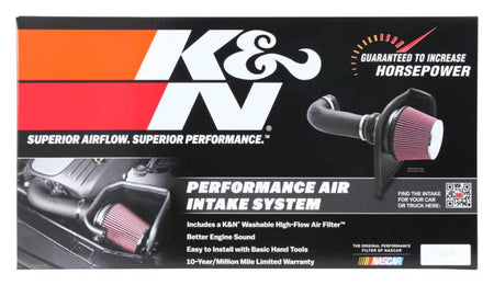 Gain a guaranteed increase in horsepower and torque with a K&N cold air intake system featuring a mandrel-bent aluminum intake tube. Each system is paired with a washable, reusable High-Flow Air Filter featuring oiled cotton filter media. The oversized, conical filter design allows you to go up to 100,000 miles between filter services under normal highway driving conditions. A custom heat shield or air box helps protect intake air from the high temperature of your engine bay, and the entire system can typically be installed in less than 90 minutes. Some intakes are not legal for sale or use on any pollution controlled motor vehicle in California. See the product specifications for CARB status on each part for a specific vehicle.