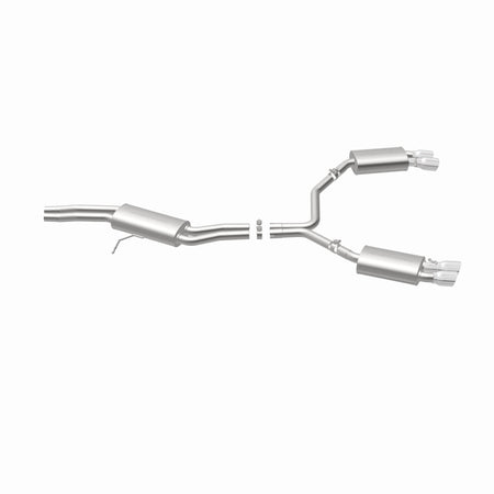 The MagnaFlow 2010-2016 Audi S4 Touring Series Cat-Back Performance Exhaust System 15599 is the perfect partner for your 3.0L 2010-2016 Audi S4 to take on a grand tour or a weekend cruise thanks to the powerful, resonant exhaust note and dyno-proven performance it brings to the table. This durable, corrosion resistant stainless steel exhaust kit is engineered to conquer the miles with ease while enhancing your driving experience with Moderate exterior and Mild interior sound levels generated through its fast-flowing, mandrel bent 2.25in. main piping and 3 Straight-Through muffler that terminate in a Quad Split Rear exit with 3.5in. Polished Welded-On Double Wall Angle Cut Folded Edge tips. 15599 features a cat-back layout design to replace your import's stock exhaust components from the catalytic converter on back. This Audi S4 exhaust system is compatible with 2010-2016 engines. The use of extensive 3D scans made during the development process has resulted in an easy-to-install, direct-fit design that fits your Audi S4 like a glove. 15599 is produced using CNC precision robotic manufacturing techniques and is backed by MagnaFlow's limited lifetime construction warranty.