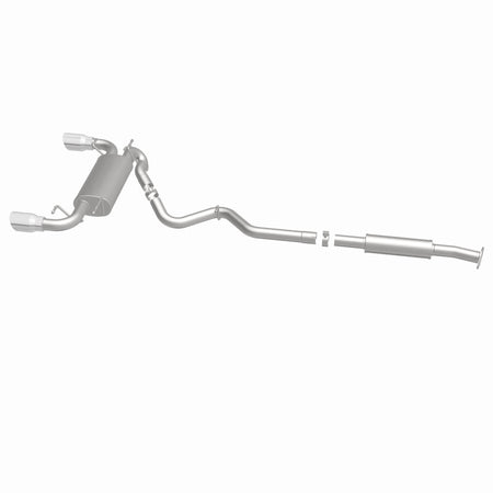 The MagnaFlow Street Series Cat-Back Performance Exhaust System 15157 brings out the personality of your Car with our signature resonant, powerful engine tone and dyno-proven performance. Thanks to its fast-flowing, mandrel bent 2.5in. main piping and 2 Straight-Through mufflers ending in a Dual Split Rear exit with 4in. Polished Welded-On Double Wall Angle Cut Folded Edge tips, this Car exhaust kit has the performance chops to match its sporty sound and appearance. Upgrade your ride to the next level with an exhaust that has the pipes to put other Car's to shame. With this system your vehicle will be producing Moderate exterior and Mild interior sound levels while leaving other cars and trucks feeling envious at every stoplight. Exhaust kit 15157 features a cat-back layout that replaces your ride's stock exhaust components from near the catalytic converter on back. Extensive 3D scanning during development has resulted in a direct-fit design that you can easily install yourself. 15157 is produced using CNC precision robotic manufacturing techniques and is backed by MagnaFlow's 1-year limited finish warranty and limited lifetime construction warranty.