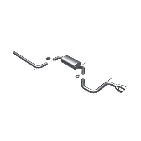The MagnaFlow Touring Series Cat-Back Performance Exhaust System 16692 16692 is the perfect partner for your 2.5L 2006-2014 Volkswagen to take on a grand tour or a weekend cruise thanks to the powerful, resonant exhaust note and dyno-proven performance it brings to the table. This durable, corrosion resistant stainless steel exhaust kit is engineered to conquer the miles with ease while enhancing your driving experience with Moderate exterior and Mild interior sound levels generated through its fast-flowing, mandrel bent 2.25in. main piping and 1 Straight-Through muffler that terminate in a Dual Straight Driver Side Rear exit with 3in. Polished Welded-On Double Wall Angle Cut Folded Edge tips. 16692 features a cat-back layout design to replace your import's stock exhaust components from the catalytic converter on back. This Volkswagen exhaust system is compatible with 2006-2014 engines. The use of extensive 3D scans made during the development process has resulted in an easy-to-install, direct-fit design that fits your Volkswagen like a glove. 16692 is produced using CNC precision robotic manufacturing techniques and is backed by MagnaFlow's limited lifetime construction warranty.