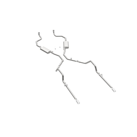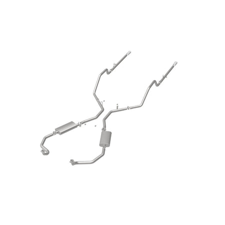 The MagnaFlow 1961-1964 Chevrolet Impala Street Series Crossmember-Back Performance Exhaust System 16724 brings enhanced engine sound and dyno-proven performance to your 3.8L, 4.6L, 5.3L, 5.4L, 5.7L, 6.7L, 7.0L 1961-1964 Chevrolet Impala with a healthy helping of our deep, resonant signature exhaust note at Moderate exterior and Mild interior sound levels. Thanks to its durable, corrosion resistant stainless steel design, this Chevrolet Impala exhaust system will handle whatever tarmac you decide to leave your mark on. This performance exhaust kit features a crossmember-back layout designed to replace your Chevrolet Impala's exhaust system from the crossmember on back. With its fast-flowing, mandrel bent 2.5in. main piping and 2 Straight-Through mufflers ending in a Dual Split Rear exit with 3in. Polished Welded-On Single Wall Angle Cut Rolled Edge tips, your muscle car will be sounding as awesome as it looks. Extensive 3D scanning during development has resulted in a direct-fit design that you can easily install yourself. 16724 is produced using CNC precision robotic manufacturing techniques and is backed by MagnaFlow's limited lifetime construction warranty.