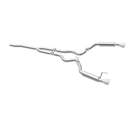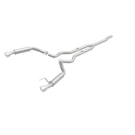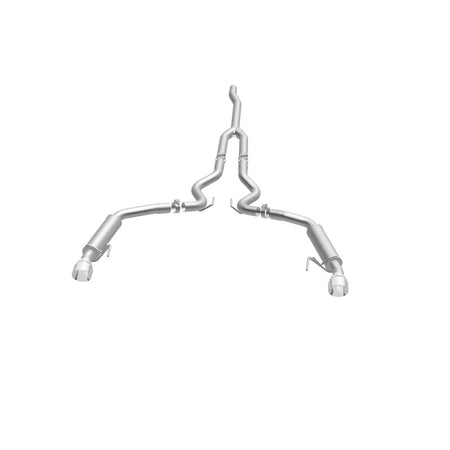 The MagnaFlow 2015-2023 Ford Mustang Competition Series Cat-Back Performance Exhaust System brings an aggressive, attention-grabbing edge to the deep resonant exhaust note we're so well known for. This Ford Mustang cat-back exhaust kit is designed to enhance your 2.3L 2015-2023 Ford Mustang with dyno-proven performance made possible thanks to fast-flowing mandrel bent 2.5in. diameter piping that passes 2 Straight-Through mufflers ending in a Dual Split Rear exit with 4.5in. Black Coated Welded-On Double Wall Angle Cut Folded Edge tips featuring a sporty black powder-coated finish. The direct-fit design allows for an easy, do-it-yourself installation process. Exhaust system 19256 is engineered to make your Ford Mustang's engine produce Moderate interior and Aggressive exterior sound levels, befitting its competition-oriented design. 19256 is made of 100% durable and corrosion-resistant stainless steel and produced using CNC precision robotic manufacturing, all backed by MagnaFlow's 1-year limited finish warranty and limited lifetime construction warranty. Please check to ensure compliance with local noise regulations.