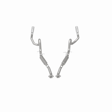 The MagnaFlow 1999-2004 Ford Mustang Competition Series Cat-Back Performance Exhaust System 15673 brings an aggressive, attention-grabbing edge to the deep resonant exhaust note we're so well known for. This exhaust kit is designed to enhance your 4.6L 1999-2004 Ford Mustang with dyno-proven performance made possible thanks to fast-flowing mandrel bent 2.5in. main piping and 2 Straight-Through mufflers ending in a Dual Split Rear exit with 3.5in. Polished Clamp-On Single Wall Angle Cut Cut Edge tips featuring a sporty finish. The exhaust system's cat-back layout replaces your ride's exhaust system from near the catalytic converter on back. Exhaust system 15673 is engineered to make your vehicle's engine produce Aggressive exterior and Moderate interior sound levels, befitting its competition-oriented design. 15673's direct-fit design makes installation a breeze thanks to the use of advanced 3D scanning techniques. This performance exhaust system is made of 100% durable and corrosion-resistant stainless steel and produced using CNC precision robotic manufacturing, all backed by MagnaFlow's limited lifetime warranty. Please check to ensure compliance with local noise regulations.