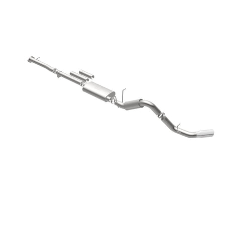 The MagnaFlow Street Series Cat-Back Performance Exhaust System 19026 brings out the personality of your Truck with our signature resonant, powerful engine tone and dyno-proven performance. Thanks to its fast-flowing, mandrel bent 4in. main piping and 2 Straight-Through mufflers ending in a Single Passenger Side Rear exit with 5in. Polished Welded-On Double Wall Angle Cut Rolled Edge tips, this Truck exhaust kit has the performance chops to match its sporty sound and appearance. Upgrade your ride to the next level with an exhaust that has the pipes to put other Truck's to shame. With this system your vehicle will be producing Moderate exterior and Mild interior sound levels while leaving other cars and trucks feeling envious at every stoplight. Exhaust kit 19026 features a cat-back layout that replaces your ride's stock exhaust components from near the catalytic converter on back. Extensive 3D scanning during development has resulted in a direct-fit design that you can easily install yourself. 19026 is produced using CNC precision robotic manufacturing techniques and is backed by MagnaFlow's 1-year limited finish warranty and limited lifetime construction warranty.