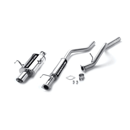 The MagnaFlow 2002-2006 Nissan Sentra Street Series Cat-Back Performance Exhaust System 15764 brings out the personality of your 2.5L 2002-2006 Nissan Sentra with our signature resonant, powerful engine tone and dyno-proven performance. Thanks to its fast-flowing, mandrel bent 2.25in. main piping and 2 Straight-Through mufflers ending in a Single Straight Passenger Side Rear exit with 4in. Polished Welded-On Double Wall Angle Cut Rolled Edge tips, this Nissan Sentra exhaust kit has the performance chops to match its sporty sound and appearance. Upgrade your ride to the next level with an exhaust that has the pipes to put other Nissan Sentra's to shame. With this system your vehicle will be producing Moderate exterior and Mild interior sound levels while leaving other cars and trucks feeling envious at every stoplight. Exhaust kit 15764 features a cat-back layout that replaces your ride's stock exhaust components from near the catalytic converter on back. Extensive 3D scanning during development has resulted in a direct-fit design that you can easily install yourself. 15764 is produced using CNC precision robotic manufacturing techniques and is backed by MagnaFlow's 1-year limited finish warranty and limited lifetime construction warranty.