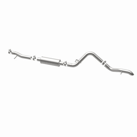 The MagnaFlow 2007-2011 Jeep Wrangler Rock Crawler Series Cat-Back Performance Exhaust System 15238 brings superior boulder-climbing capabilities to your 3.8L 2007-2011 Jeep Wrangler with a weight-optimized, dyno-tested, corrosion resistant and durable stainless steel design engineered to closely hug the undercarriage of your rig for improved ground clearance. Exhaust kit 15238 is engineered to produce our powerful, resonant signature exhaust note at Aggressive exterior and Moderate interior sound levels. Extensive 3D scanning was used during the development of this Jeep Wrangler exhaust system to create a direct-fit design, enabling a do-it-yourself installation process. 15238's emissions-legal cat-back design replaces all your rig's exhaust components from the catalytic converter on back with its 2.5in. diameter mandrel bent main piping that passes through 1 Straight-Through mufflers before ending in a Single Straight Driver Side Rear exit. The turndown style tipless exit improves departure angles, allowing for more options when it comes to traversing tricky boulders and other off-road obstacles. Exhaust system 15238 is produced using advanced CNC precision robotic manufacturing techniques and backed by MagnaFlow's limited lifetime warranty.
