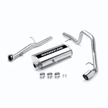 The MagnaFlow 2007-2010 Ford Explorer Sport Trac Street Series Cat-Back Performance Exhaust System 16679 brings out the personality of your 4.6L 2007-2010 Ford Explorer Sport Trac with our signature resonant, powerful engine tone and dyno-proven performance. Thanks to its fast-flowing, mandrel bent 2.5in. main piping and 1 Straight-Through mufflers ending in a Single Driver Side Rear exit with 4in. Polished Welded-On Double Wall Angle Cut Rolled Edge tips, this Ford Explorer Sport Trac exhaust kit has the performance chops to match its sporty sound and appearance. Upgrade your ride to the next level with an exhaust that has the pipes to put other Ford Explorer Sport Trac's to shame. With this system your vehicle will be producing Moderate exterior and Mild interior sound levels while leaving other cars and trucks feeling envious at every stoplight. Exhaust kit 16679 features a cat-back layout that replaces your ride's stock exhaust components from near the catalytic converter on back. Extensive 3D scanning during development has resulted in a direct-fit design that you can easily install yourself. 16679 is produced using CNC precision robotic manufacturing techniques and is backed by MagnaFlow's 1-year limited finish warranty and limited lifetime construction warranty.